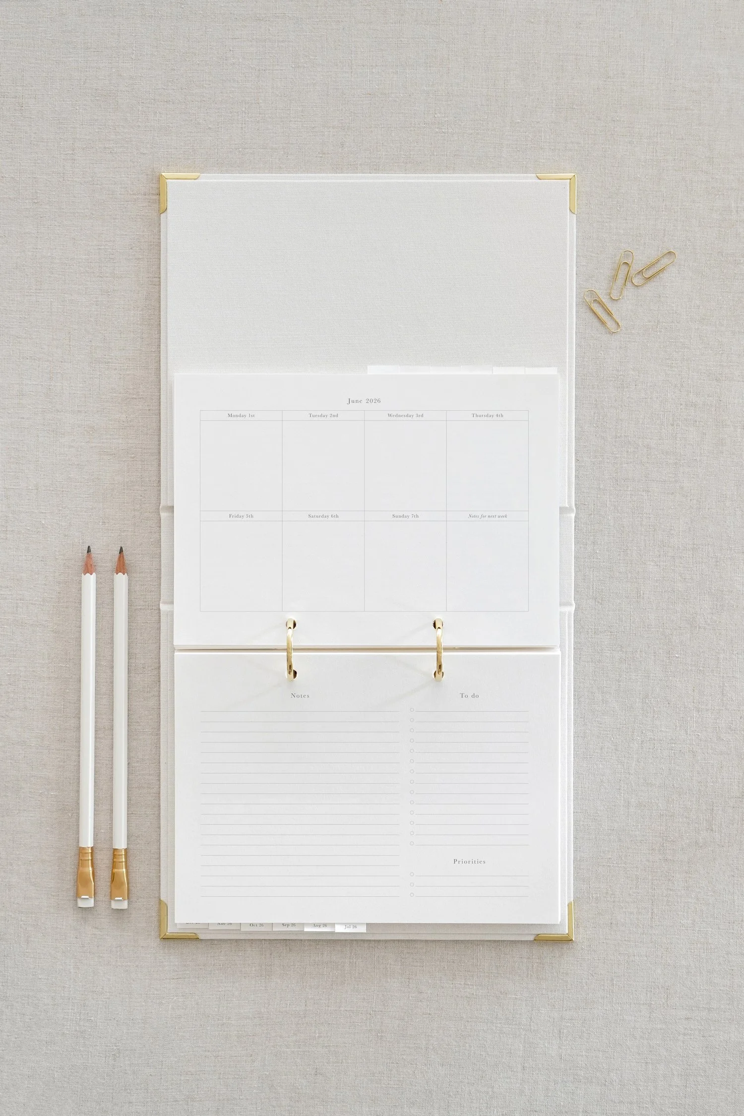 Please note the maximum number of pages we recommend including within the planner is 110, so not to strain and damage the mechanisms.